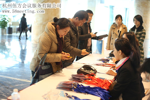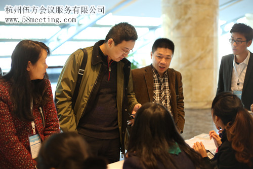 會(huì)議現(xiàn)場(chǎng)簽到,參會(huì)人員正在辦理登記,領(lǐng)取資料證件。簽到處,也有參會(huì)人員咨詢接待人員。
