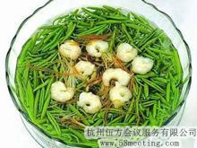 莼菜,為西湖著名特產之一。葉片顯橢圓形,呈暗綠色,嫩莖和葉背部都有膠狀透明物質。在歷史上,以“三潭印月”莼菜最為著名。此菜滑嫩清香,營養豐富。