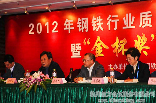 2012年12月20日,鋼鐵行業質量品牌建設總結暨“金杯獎”表彰大會在杭州召開。據伍方會議服務了解,工業和信息化部科技司副司長沙南生出席會議并講話。鋼鐵協會黨委書記、副會長劉振江等出席活動。