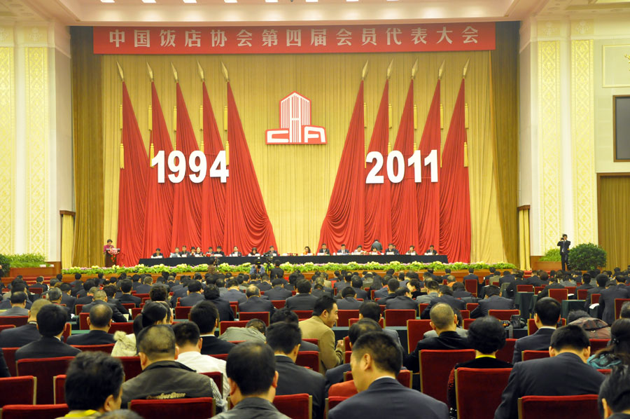 2011年11月1日上午9點(diǎn),五年一次的中國(guó)飯店協(xié)會(huì)換屆大會(huì)在北京·人民大會(huì)堂隆重召開(kāi)。中國(guó)飯店協(xié)會(huì)第三屆理事會(huì)按照章程規(guī)定進(jìn)行換屆。中國(guó)飯店協(xié)會(huì)會(huì)長(zhǎng)韓明女士代表第三屆理事會(huì)向第四屆會(huì)員代表大會(huì)報(bào)告工作,并請(qǐng)審議。韓明會(huì)長(zhǎng)重點(diǎn)回顧了五年來(lái)取得了工作,飯店與餐飲業(yè)是民生產(chǎn)業(yè),對(duì)擴(kuò)大內(nèi)需、安置就業(yè)、提高生活品質(zhì),發(fā)揮著重要作用。到2010年年底,全國(guó)飯店餐飲企業(yè)近330萬(wàn)家,從業(yè)人員2000多萬(wàn)人,年?duì)I業(yè)收入近2萬(wàn)億,占當(dāng)年GDP的5%左右,每年以20%的速度快速增長(zhǎng)。