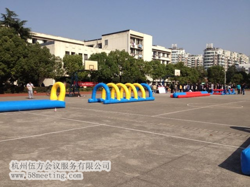 活動現場已經擺好了今天的趣味活動的道具,就等運動員們入場啦!
